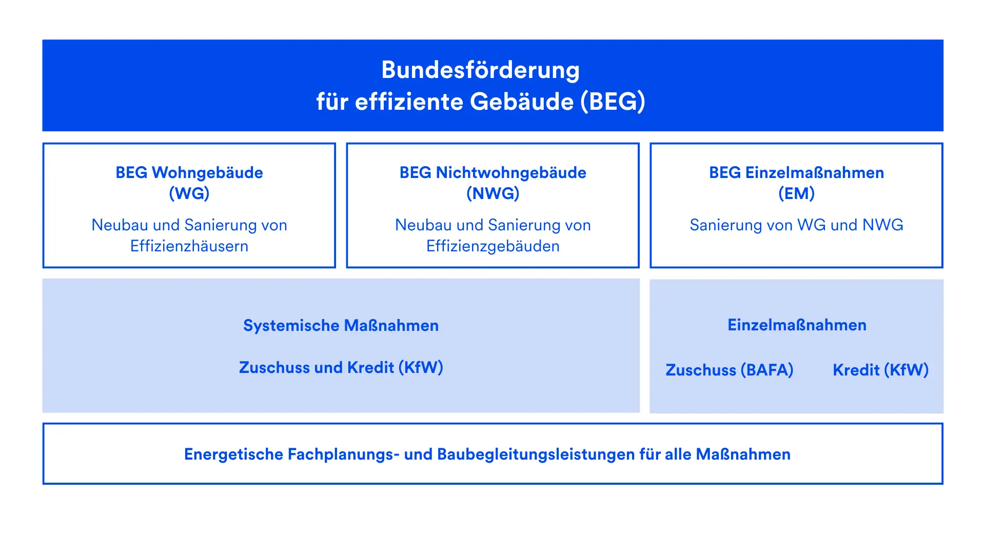 - Für Nichtwohngebäude gibt es das BAFA-Fördermodul EBN 2. Es unterstützt ein energetisches Sanierungskonzept, das den Ist-Zustand erfasst und individuelle Maßnahmen zur Effizienzsteigerung aufzeigt.