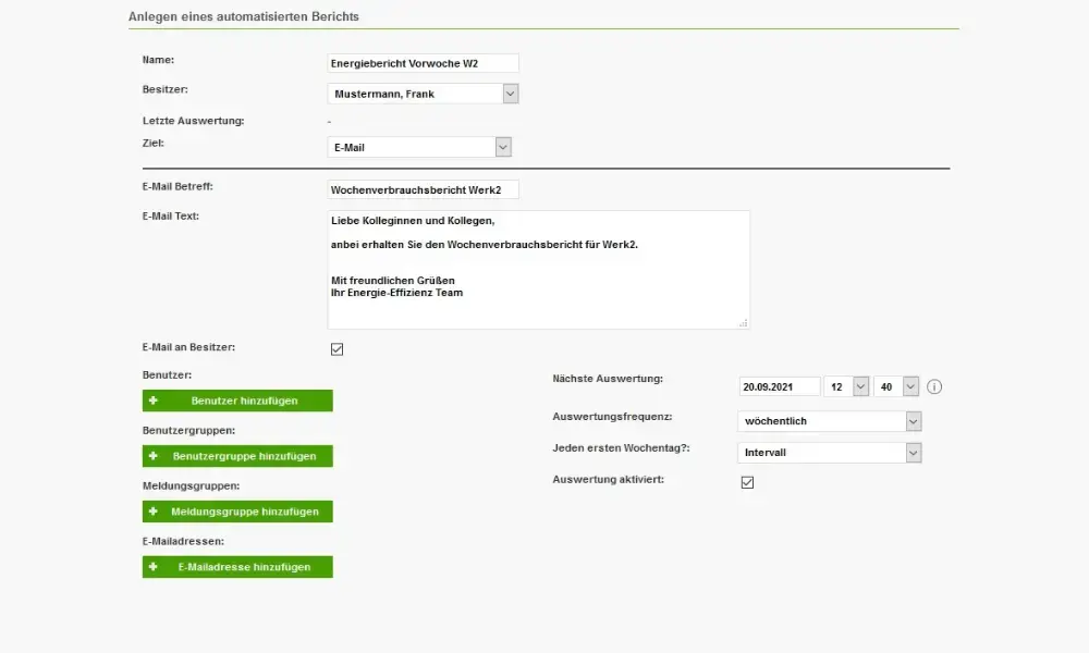 - Flexibel einstellbarer, regelmäßiger und automatischer E-Mail-Versand