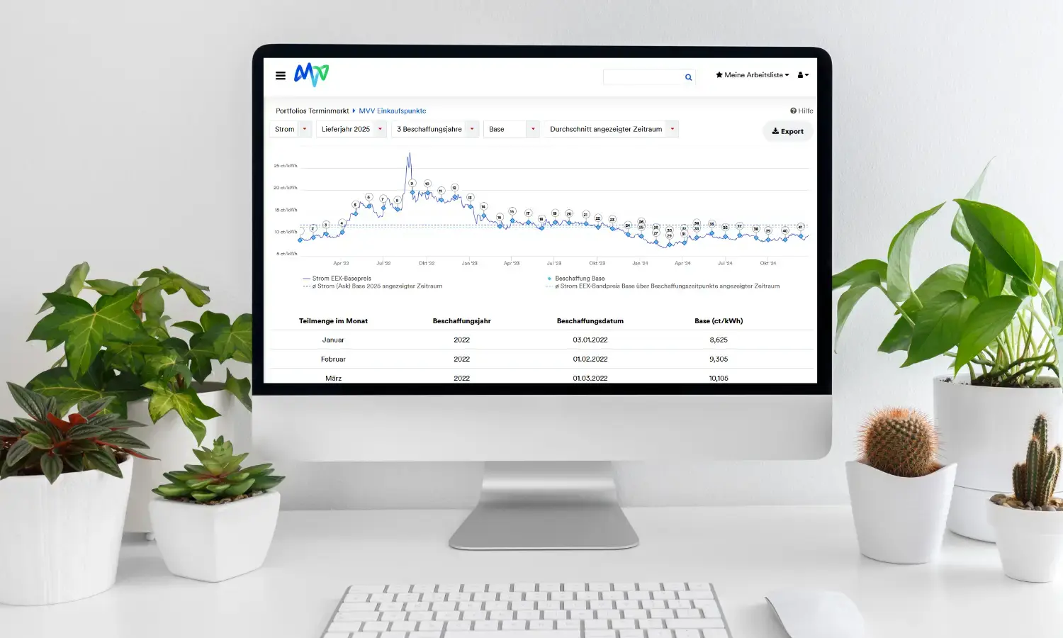 Absolute Transparenz: Der aktuelle Stand Ihrer Beschaffungsstrategie, die erzielten Energiepreise und die Marktentwicklung immer im Blick.
